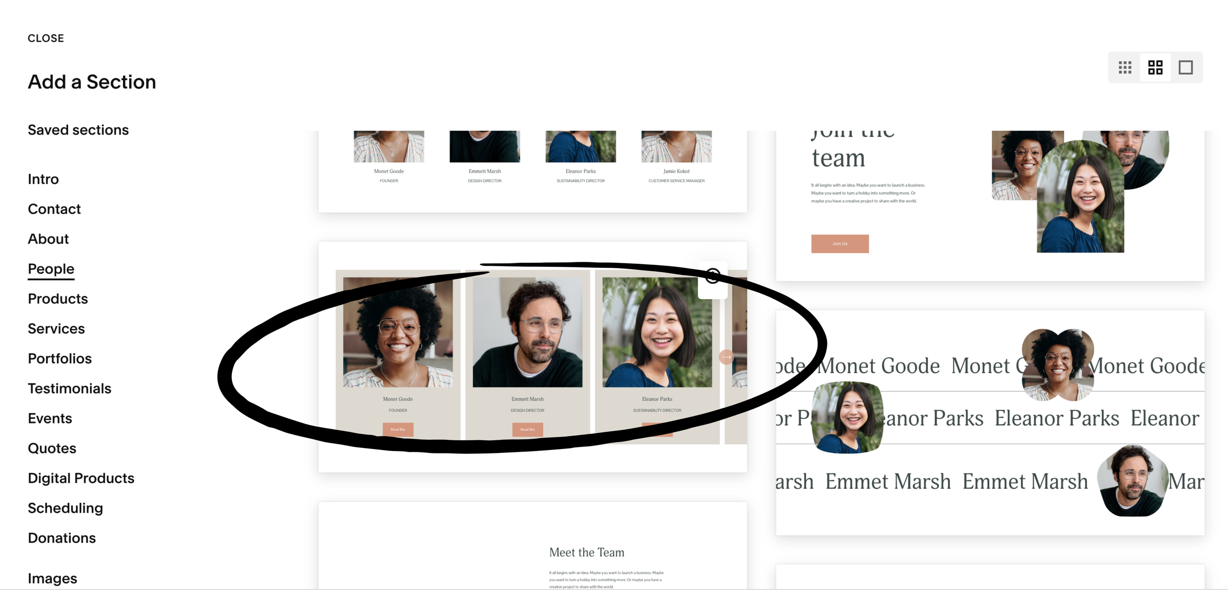 Navigate to the "People" category (or any other that uses a list format). Select a layout you like. If you would like the option of adding an image and a button then choose this one: